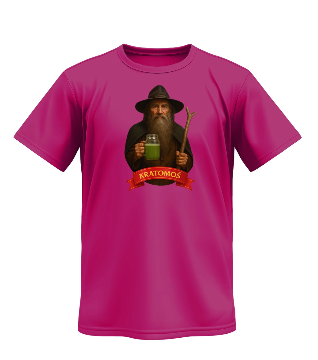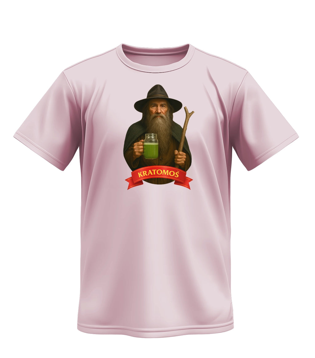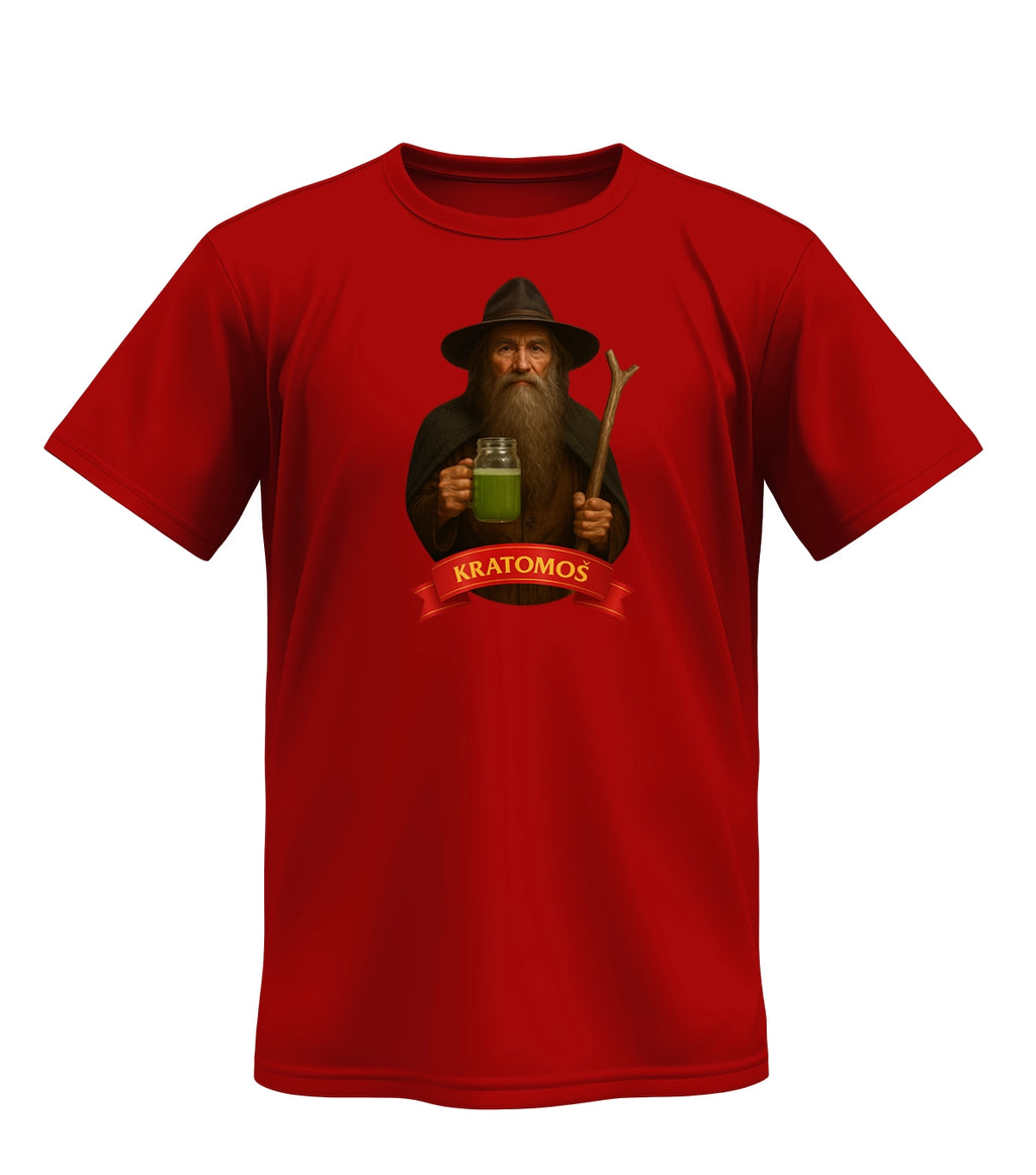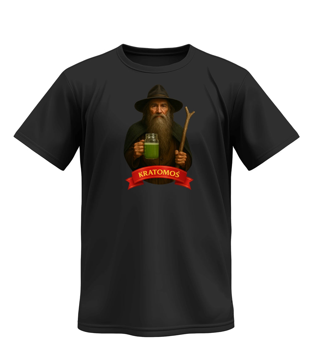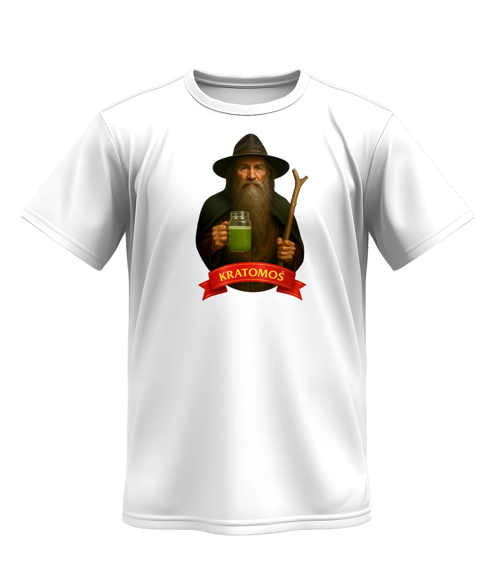 „Kratomoš“ je slovní hříčka – moudrý horal ve stylu Krakonoše si místo pohádkové medicíny míchá kratom. Je to pocta české kultuře s moderním twistem, který pobaví i bez vysvětlování. Perfektní na festival, výlet do hor nebo jen tak do města.